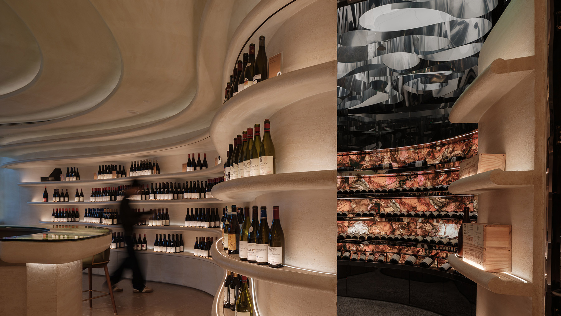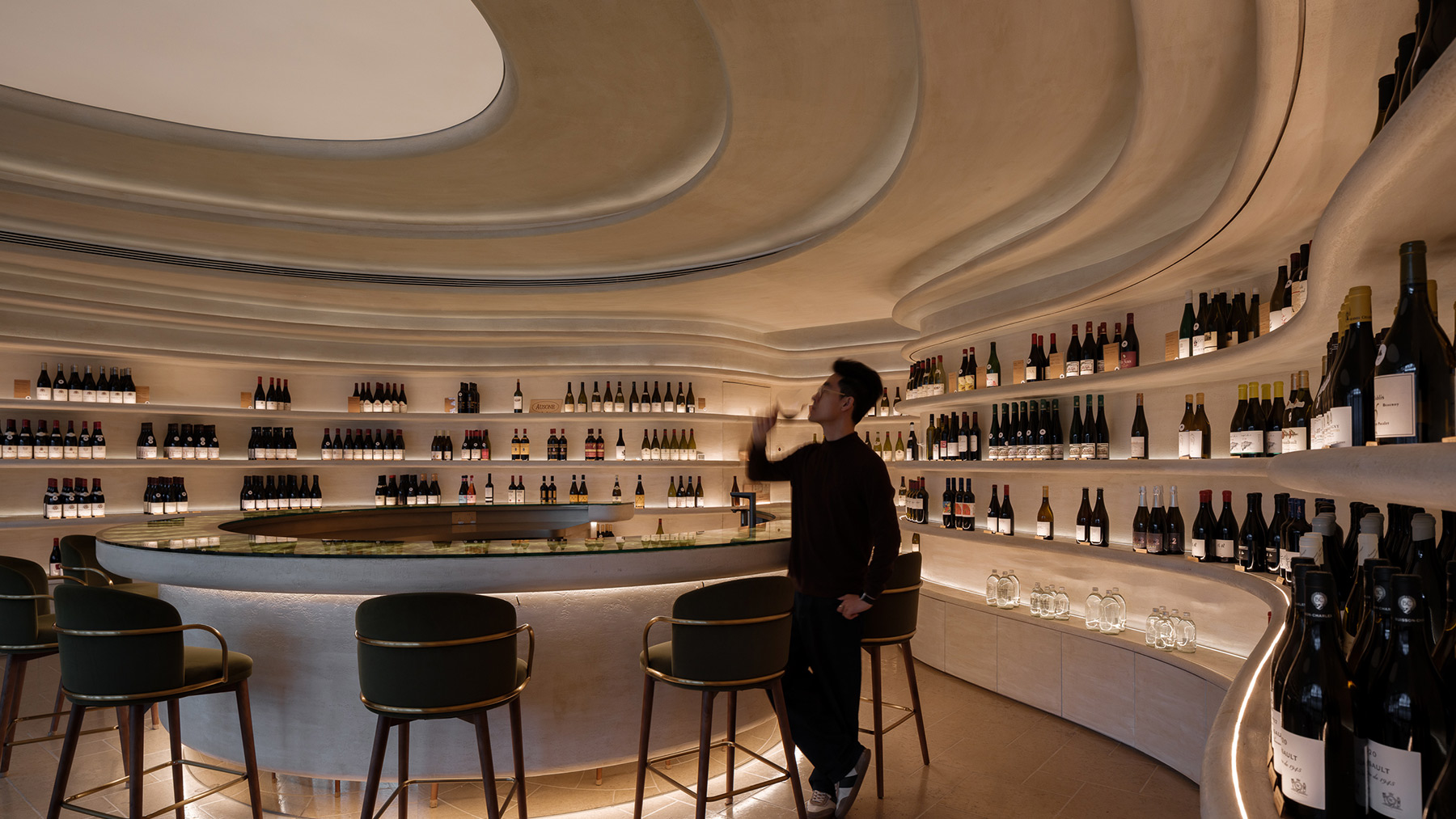 The Fine Wine Experience makes its debut in Mainland China, choosing Shanghai’s Yongyuan Road in Jing’an District—a street that blends historical charm with contemporary vibrancy. The space continues the multi-functional concept of its Hong Kong flagship, combining fine wine retail, professional tastings, food and wine pairings, and exclusive member events to create an immersive social hub for wine enthusiasts. David Wei drew design inspiration from the “Burgundy Vineyard,” translating the rolling vineyard landscape and natural textures into the spatial language. Flowing curves and warm materials intertwine, complemented by soft lighting to evoke the ritualistic ambiance of a wine cellar. Tiered walls and display structures echo vineyard terraces, bringing depth and clarity to a compact space while honoring the cultural heritage of the wine region. More than just a place to buy and taste wine, this venue is a social platform for sharing a refined wine lifestyle, marking a significant step in The Fine Wine Experience’s expansion across Asia.