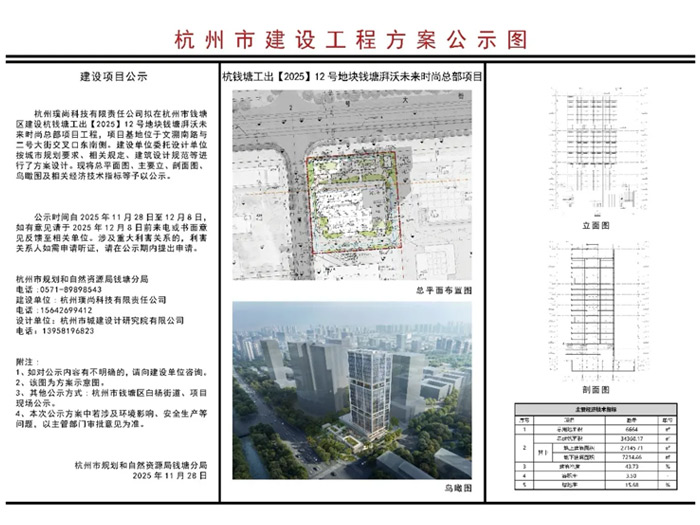 The PAI Future Fashion Headquarters project, master-planned and designed by HATCH Architects, has recently received official planning approval from the Hangzhou Municipal Bureau of Natural Resources and Planning, marking the issuance of the Construction Planning Permit. Located in the core area of Qiantang District, Hangzhou, the project has a total gross floor area of approximately 34,000 square meters, integrating headquarters offices, R&D and production facilities, and supporting industrial functions. Responding to limited site conditions and multiple urban constraints, the planning strategy adopts a clear and restrained approach to meet the spatial demands of a high-density industrial environment. The project applies a vertical integration strategy on a compact site of approximately 6,600 square meters, with Levels 2–3 allocated for above-ground parking to reduce the extent of underground excavation. A main tower rising to approximately 100 meters is positioned along the northwestern edge of the site. Through volumetric shifts, the tower is articulated into north and south blocks, forming a dynamic urban frontage along No. 2 Avenue. According to David Wei, Principal Architect of HATCH Architects, the project is conceived around the idea of a “Panorama Garden.” Through a layered system of vertical greenery and sky gardens, nature is introduced into different levels of the building, creating an ecological workplace that balances openness, comfort, and efficiency. The building envelope combines light-grey aluminum panels with high-performance Low-E glazing, establishing a rational and restrained architectural expression through modular composition and clear geometric order, while responding to the urban scale and industrial character of the district. Currently, the project has completed the planning approval process. Construction documentation and façade detailing are being developed in parallel. The design team is leveraging BIM-based coordination to ensure the accurate translation of planning concepts into the implementation phase.