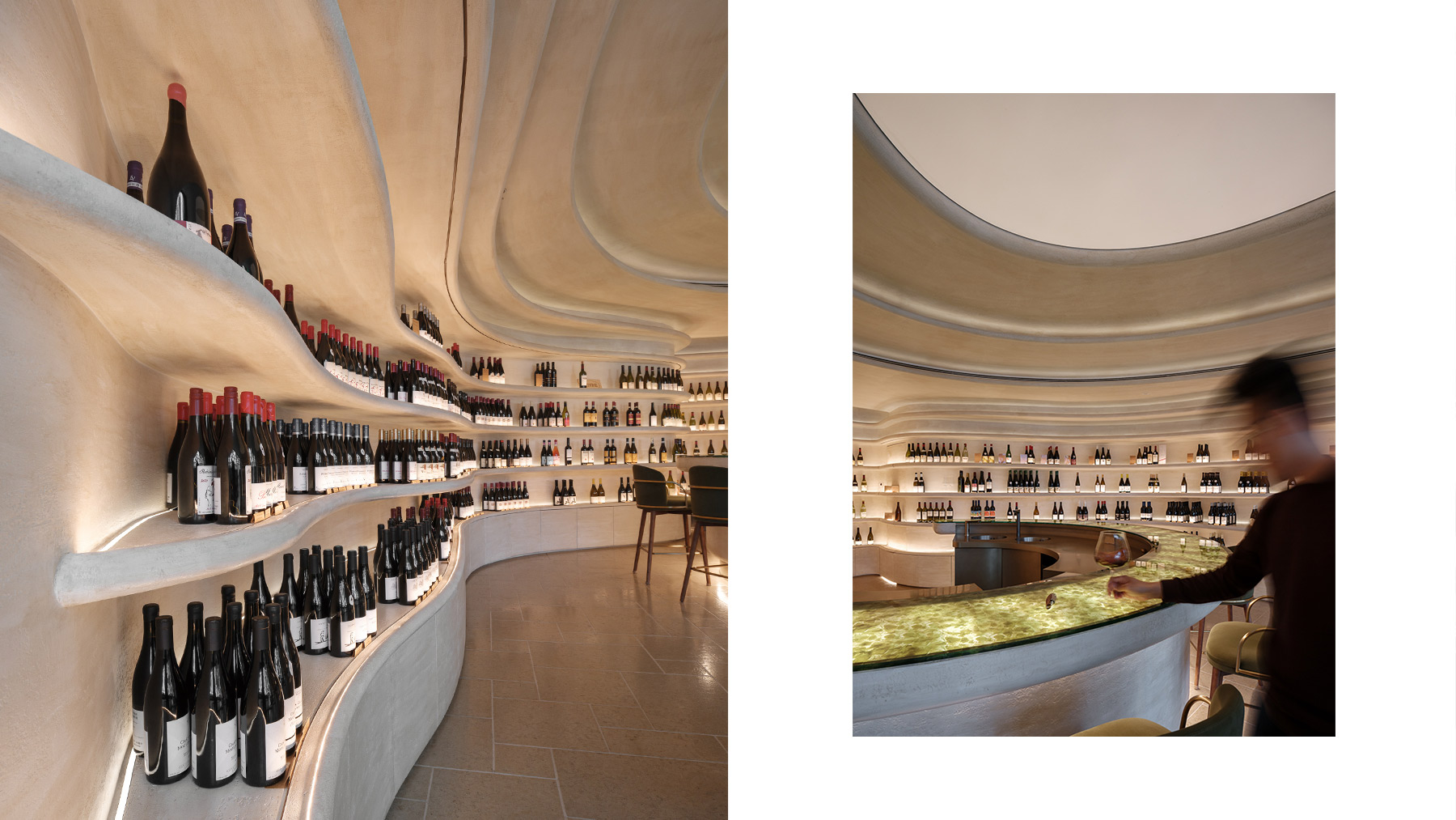 The Fine Wine Experience makes its debut in Mainland China, choosing Shanghai’s Yongyuan Road in Jing’an District—a street that blends historical charm with contemporary vibrancy. The space continues the multi-functional concept of its Hong Kong flagship, combining fine wine retail, professional tastings, food and wine pairings, and exclusive member events to create an immersive social hub for wine enthusiasts. David Wei drew design inspiration from the “Burgundy Vineyard,” translating the rolling vineyard landscape and natural textures into the spatial language. Flowing curves and warm materials intertwine, complemented by soft lighting to evoke the ritualistic ambiance of a wine cellar. Tiered walls and display structures echo vineyard terraces, bringing depth and clarity to a compact space while honoring the cultural heritage of the wine region. More than just a place to buy and taste wine, this venue is a social platform for sharing a refined wine lifestyle, marking a significant step in The Fine Wine Experience’s expansion across Asia.