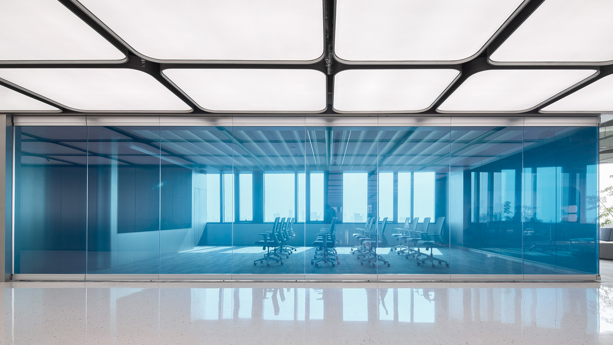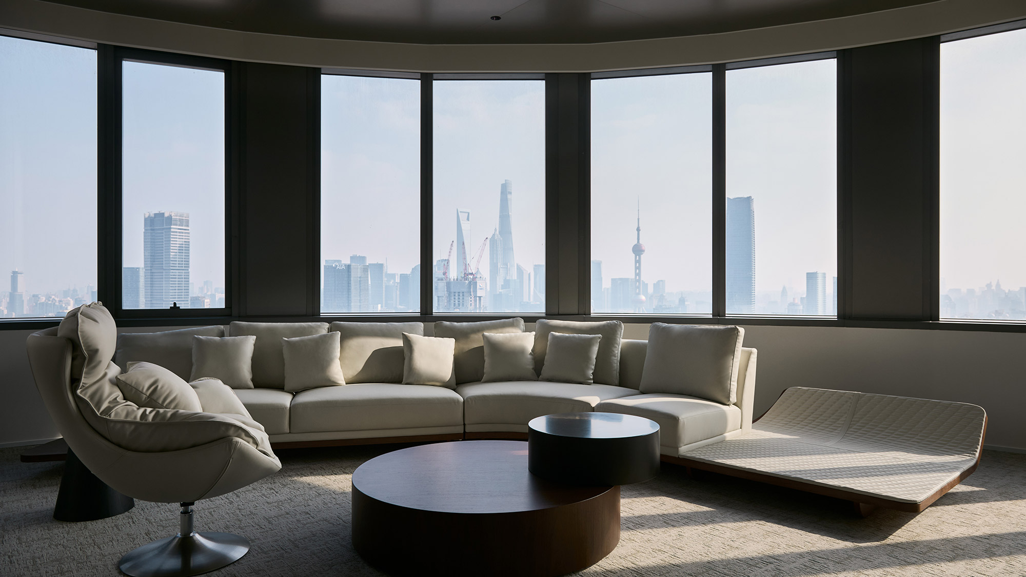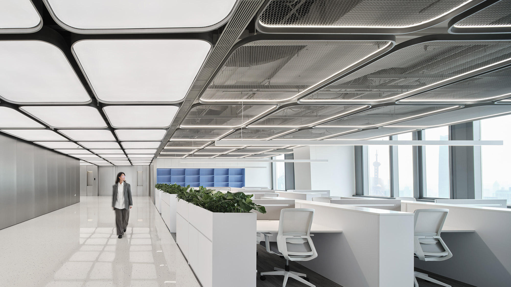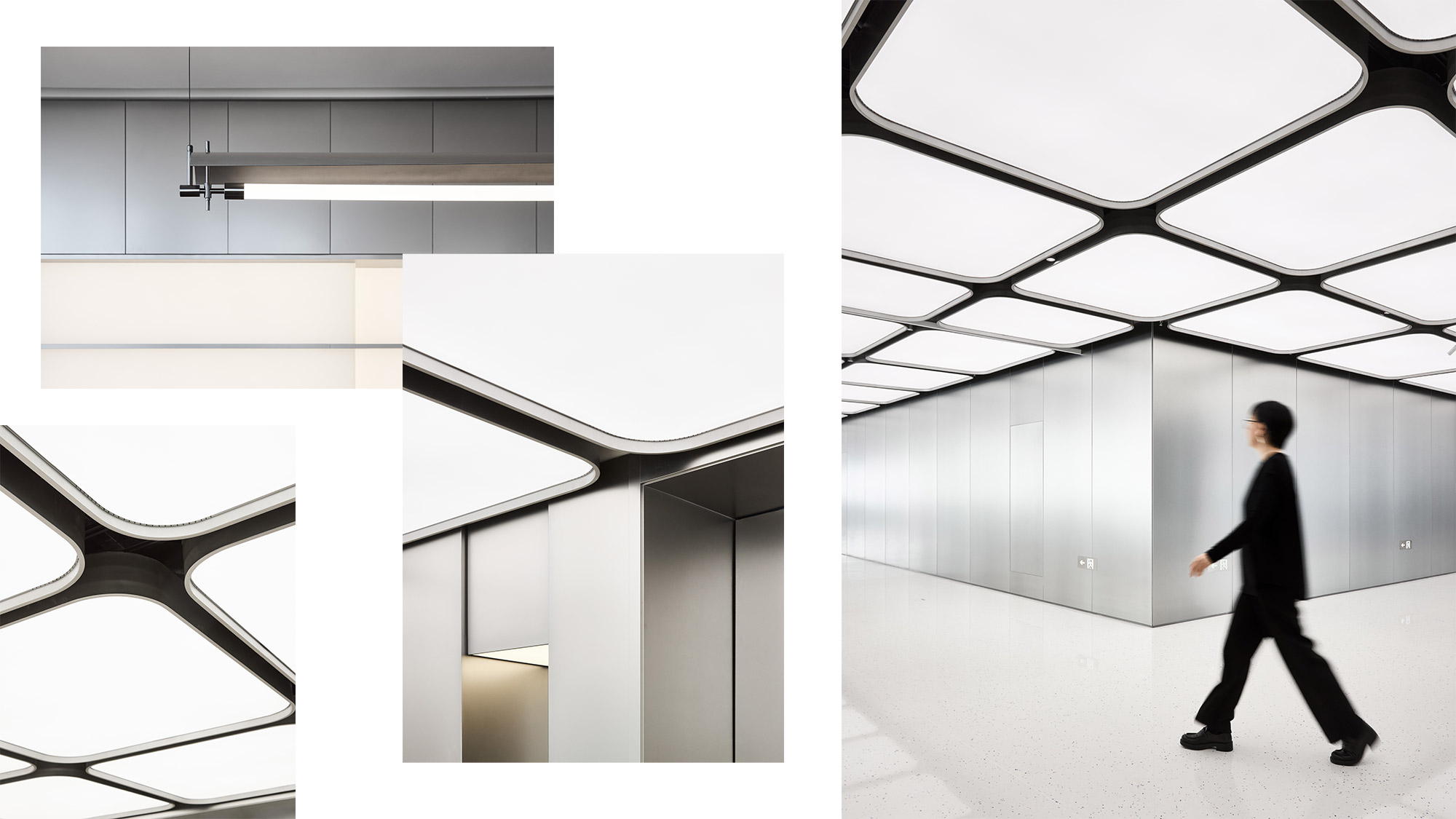 Located at Ruihong Corporate Avenue in Shanghai’s North Bund, this tech finance headquarters occupies an entire high-rise office floor. Conceived as a “space station,” the design integrates workplace, reception, display, training, and social functions within a continuous and restrained spatial system. A palette of silver white and cool grey, together with matrix lighting, a circular gallery, a flexible event space, and panoramic executive areas, creates a headquarters environment defined by precision, clarity, and a forward-looking vision.